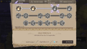 La structure roguelite de StormEdge repose sur une montée en puissance progressive en vue de l’assaut final. Les cinq actes du jeu ne sont pas équivalents : les premiers servent d’échauffement pour le dernier, où il faut enchaîner toutes les zones et vaincre chaque boss en une seule run. Ce choix de design, surprenant au départ, s’avère bien pensé, car la progression se ressent constamment. Entre deux runs, on peut améliorer ses compétences de base de façon permanente au campement en dépensant les diamants récoltés, préparant ainsi chaque tentative suivante avec davantage de puissance et de stratégie.