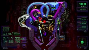 Xenotilt: Hostile Pinball ActionL’objectif est simple en apparence : marquer le plus de points possible avec vos trois billes sur une table unique, mais monumentale. Cette dernière, conçue comme un vaisseau spatial, est divisée en trois étages distincts, chacun grouillant d’ennemis et de boss aux designs pixelisés spectaculaires – pensez à des démons cybernétiques, des crânes énergétiques ou des succubes robotisées.