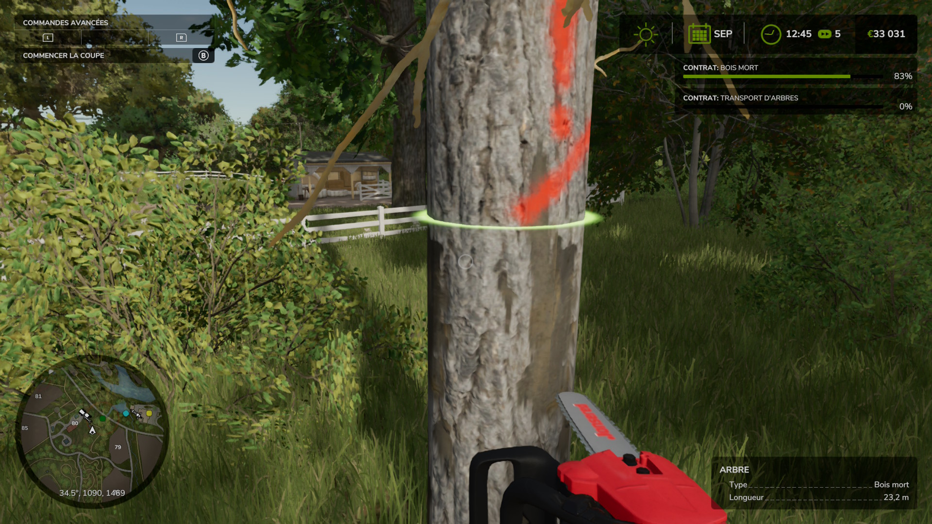 Mais revenons à nos moutons ou à nos prés, ou à nos forêts… Sous cette habile transition, vous devinez alors les 3 spécialités qui s’offrent à vous dans le jeu. Libre à vous d’embrasser une carrière d’agriculteur et de cultiver les terres pour produire des petits pois, du blé, du riz, des pommes de terre ou encore du colza (au final, ce ne sont pas moins de 25 types de cultures qui sont possibles). Si vous préférez les animaux, pas de soucis, vous pourrez vous lancer dans l’élevage avec pas moins de 6 espèces différentes. Entre les vaches, les buffles, les poules, les cochons, les abeilles et les chevaux, vous aurez de quoi faire. Enfin, si l’agriculture et l’élevage ne vous tentent pas, il sera alors possible de se lancer dans la sylviculture (la culture du bois) et de venir, tronçonneuse à la main, dans les étendues de forêt pour couper le bois mort (ou non), pour ensuite conditionner des buches et les rapporter au menuisier qui transformera le bois en planches pour finalement en faire des meubles… ou d’autres objets comme des… pianos. Bien entendu, il est également possible de s’adonner librement aux 3 voies offertes de manière à profiter un maximum des possibilités offertes et gagner un maximum d’argent pour acheter des nouveaux équipements plus performants, des nouveaux bâtiments pour étendre votre « empire » ou encore des ouvriers dirigés par une IA pour faire les tâches à votre place. Et si vraiment vous ne savez pas quoi faire, vous pourrez obtenir des contrats pour réaliser des actions spécifiques (il sera alors possible de louer l’équipement nécessaire à la réalisation, moyennant une petite ponction sur le salaire que vous rapportera cette action – chose que nous vous recommandons de faire, car après il n’est plus possible de savoir quels sont les meilleurs outils à employer pour arriver à nos fins).