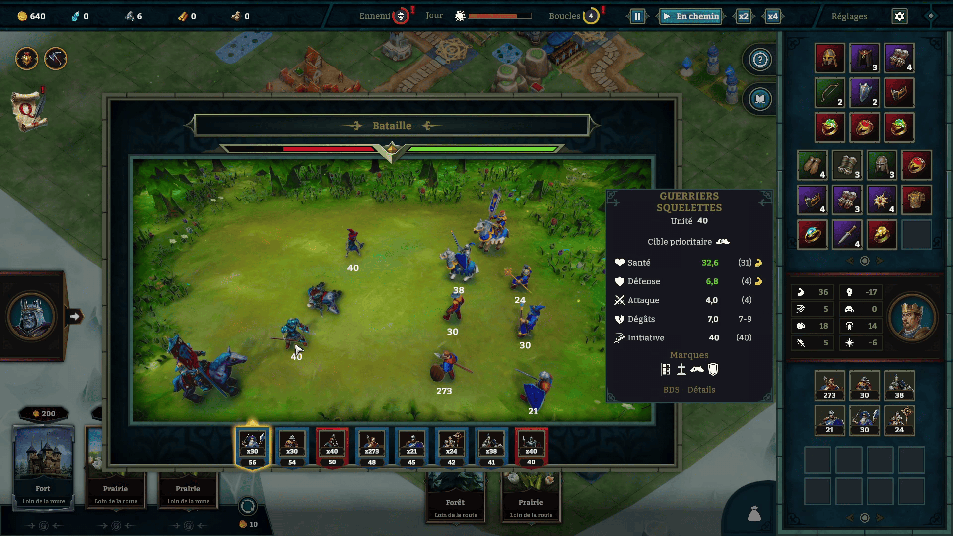 Concrètement, certains équipements renforceront par exemple notre infanterie (statistique d’adaptabilité) et diminueront nos clercs (statistique de connaissance), et nous devrons peut-être soit vendre, soit changer la composition de notre armée afin de profiter au maximum de ces pièces d’armure.