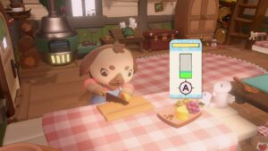 En semaine, vous explorez les villages pour récolter des ingrédients (salade, tomate, poivron, pomme, et bien d’autres) ou aider les locaux. L’artisanat ne se résume pas à cliquer sur un menu, il implique des mini-jeux de rythme ou d’adresse pour chaque activité : couper des légumes, mélanger une préparation, tresser des couronnes, etc.
