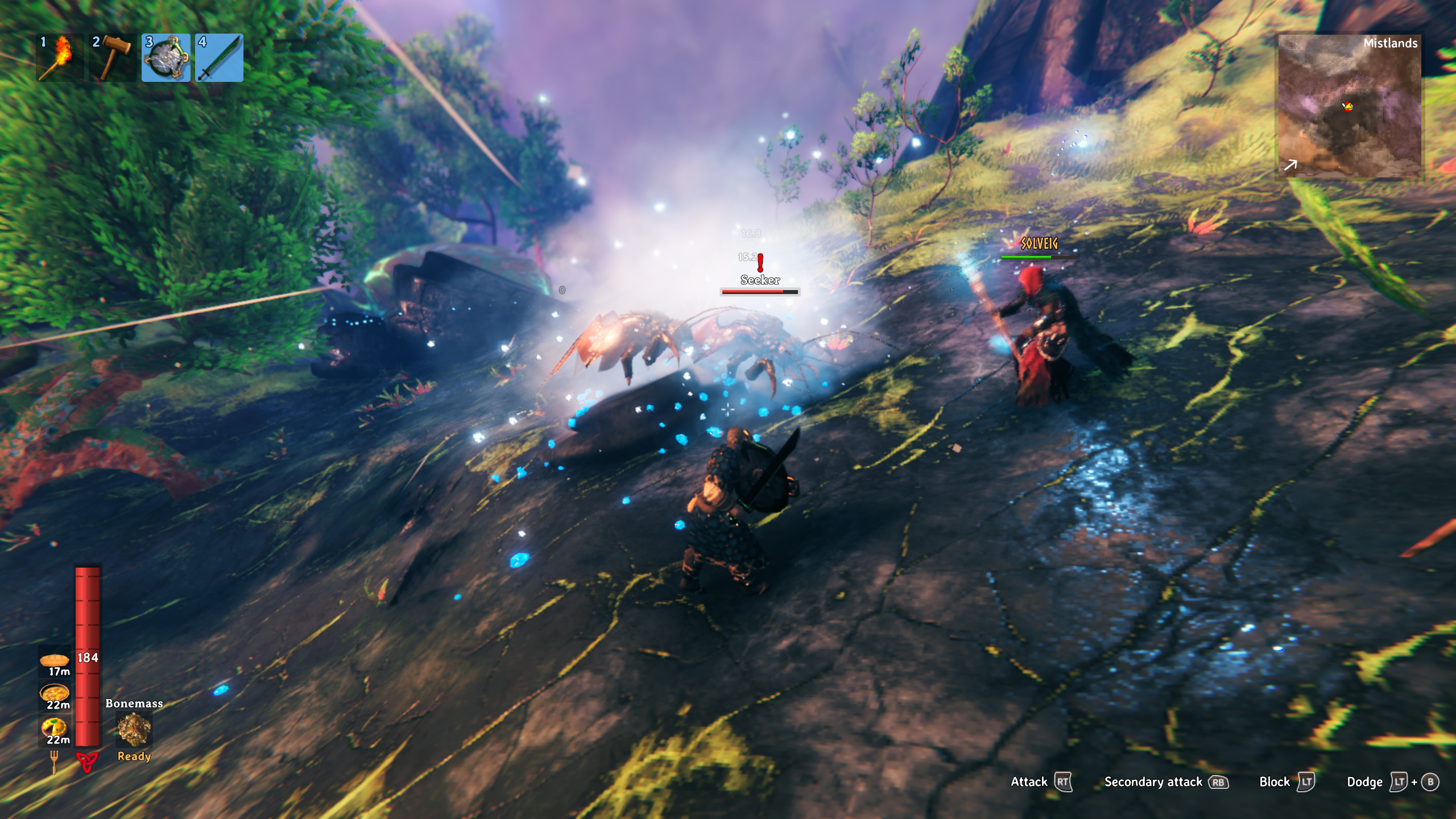 Le gigantesque monde en génération procédurale invite à explorer et s’établir dans des contrées mystiques, de mystérieuses forêts et d’imposantes montagnes, tout en affrontant les créatures de légendes et les animaux sauvages qui y habitent. Les combats exigeants basés sur un système d’esquives et de parades proposent un vaste éventail d’armes.