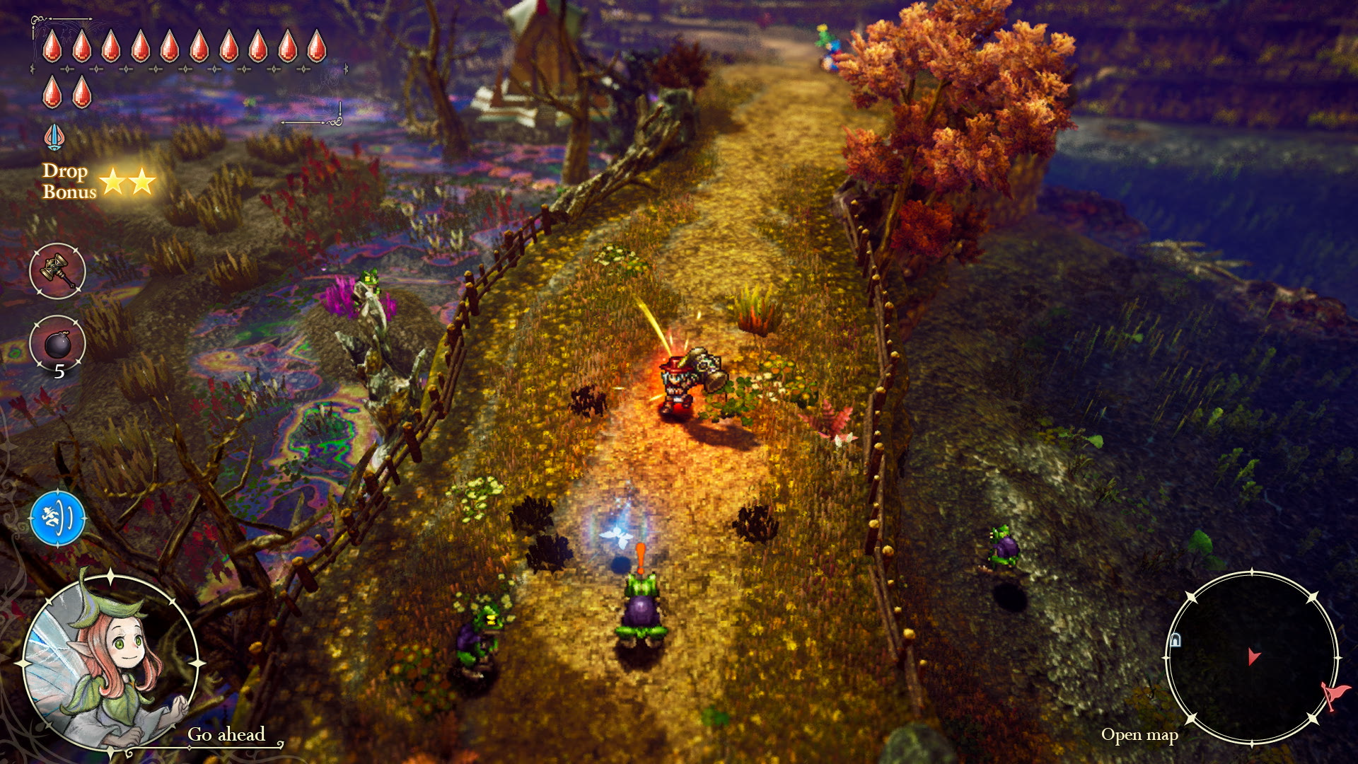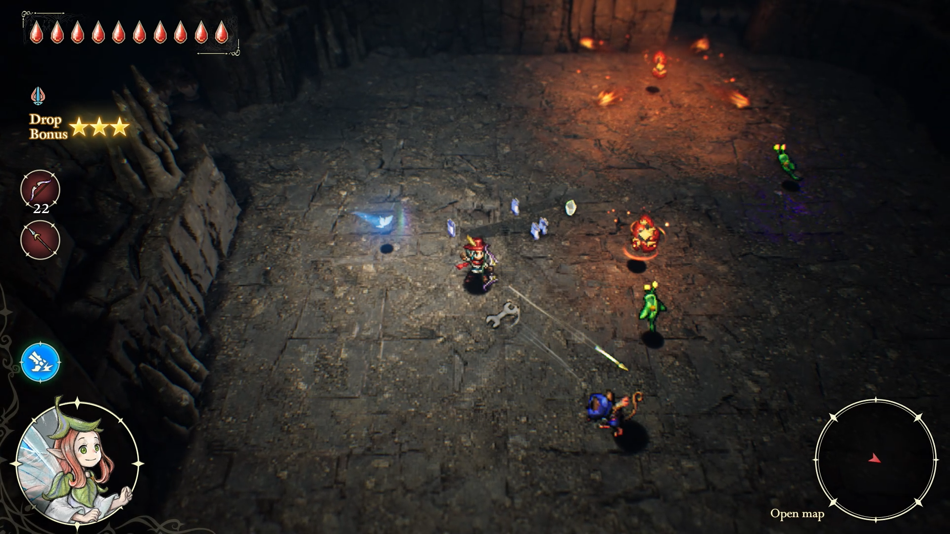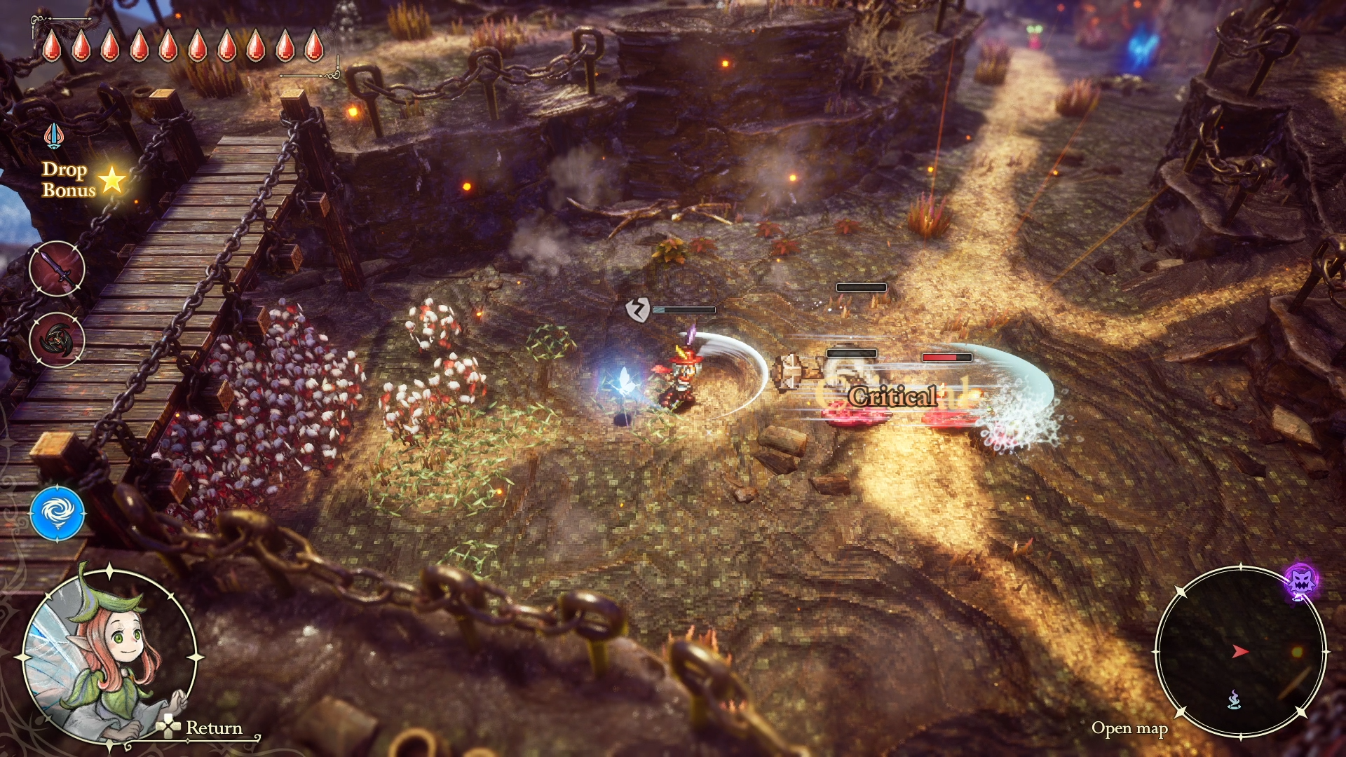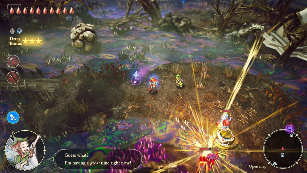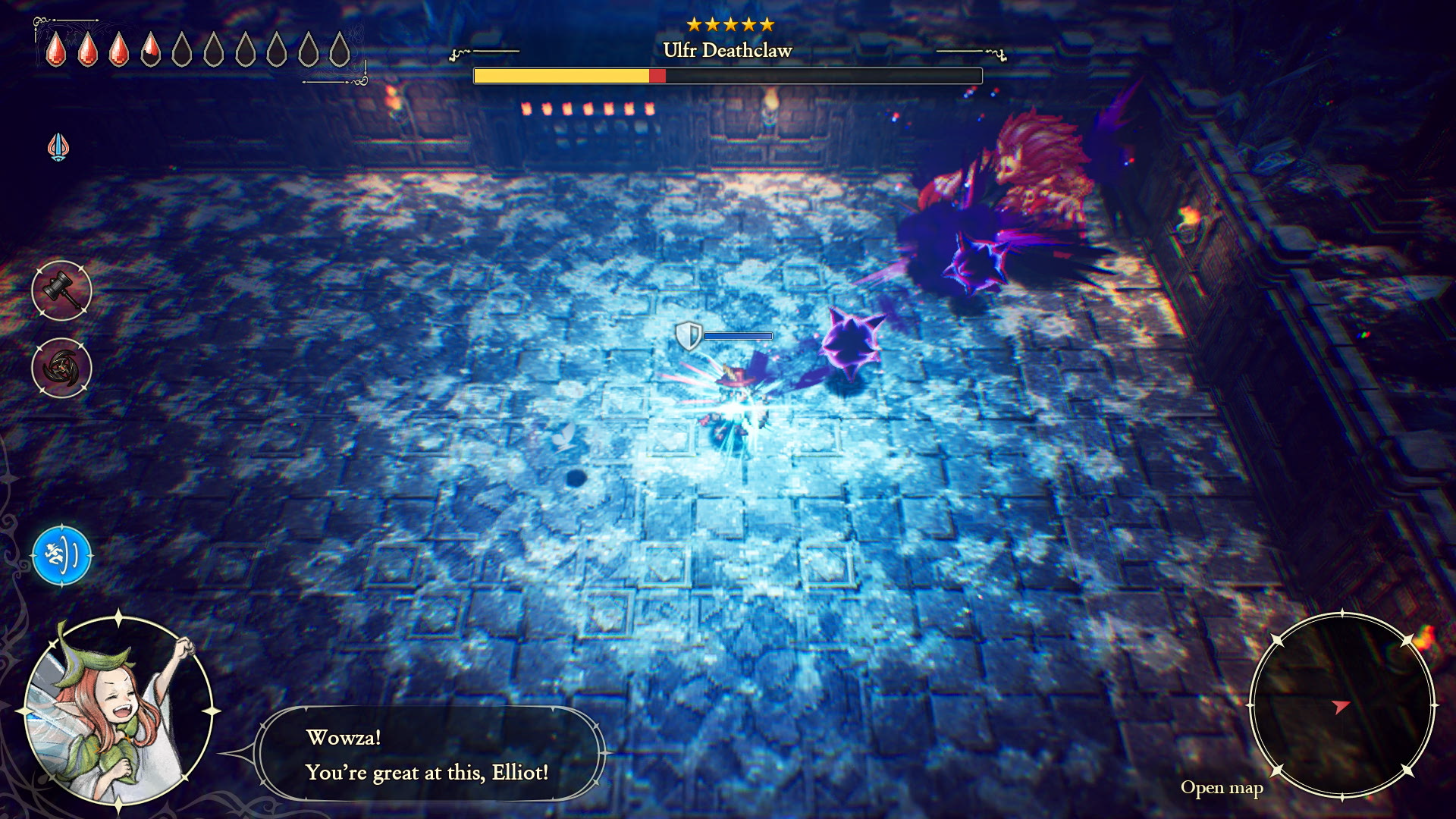 Le jeu repose sur un système d’action dynamique. Elliot peut explorer librement le continent, manier de nombreuses armes — épées, lances, marteaux, arcs, boomerangs, bombes, chaînes et faucilles — et utiliser des attaques spéciales propres à chaque catégorie. Faie joue un rôle central : elle soutient Elliot en combat, récupère des objets, résout des pièges, permet la téléportation, accélère les déplacements et peut même le ressusciter en échange de tul, la monnaie locale. Le titre propose également un mode coopératif local où un second joueur peut contrôler Faie.