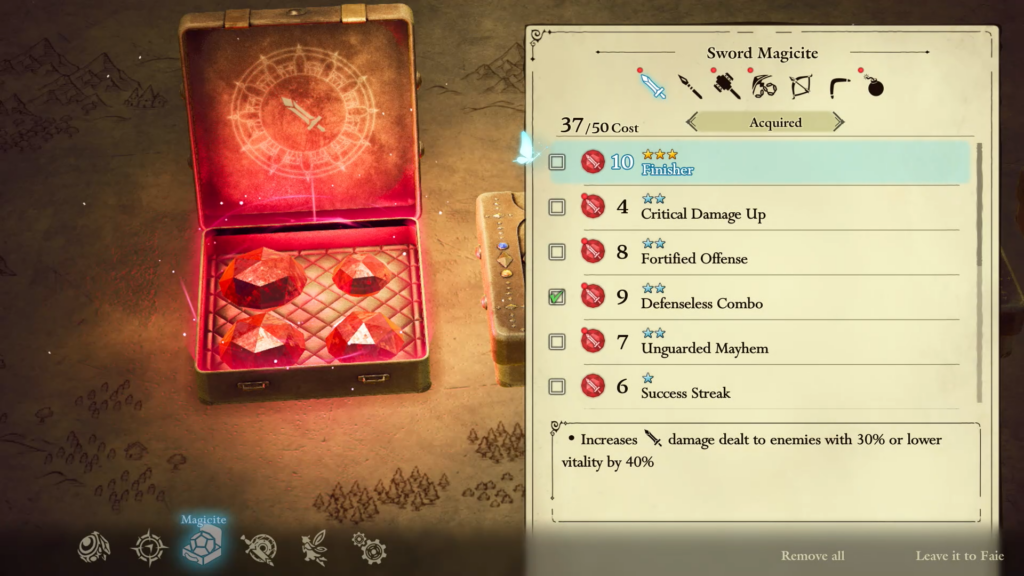 La progression s’appuie sur la magilithe, un système d’amélioration permettant d’assembler des fragments pour créer des bonus aux effets variés. Les joueurs peuvent composer des ensembles synergiques adaptés à leur style de jeu ou aux zones explorées. Plus le rang de fabrication augmente, plus les magilithes rares deviennent accessibles. Le jeu intègre aussi des ajustements issus des retours de la démo, comme une vitesse de déplacement accrue, de nouveaux niveaux de difficulté et des améliorations de confort pour la gestion des magilithes et des raccourcis d’armes.