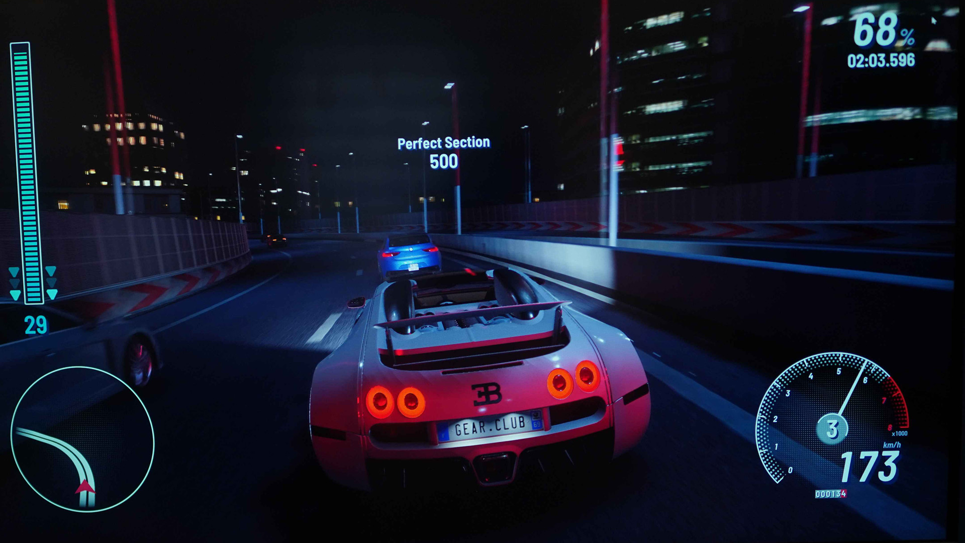 Gear.Club Unlimited 3On a largement préféré le mode Performance, qui rend la conduite bien plus fluide et agréable. Les modélisations des voitures sont très propres, avec des intérieurs détaillés (et pour la première fois dans la série, une vue cockpit, même si les animations du volant sont basiques). Les jeux de lumière, notamment les couchers de soleil sur la côte méditerranéenne ou les néons des autoroutes japonaises, sont réussis.