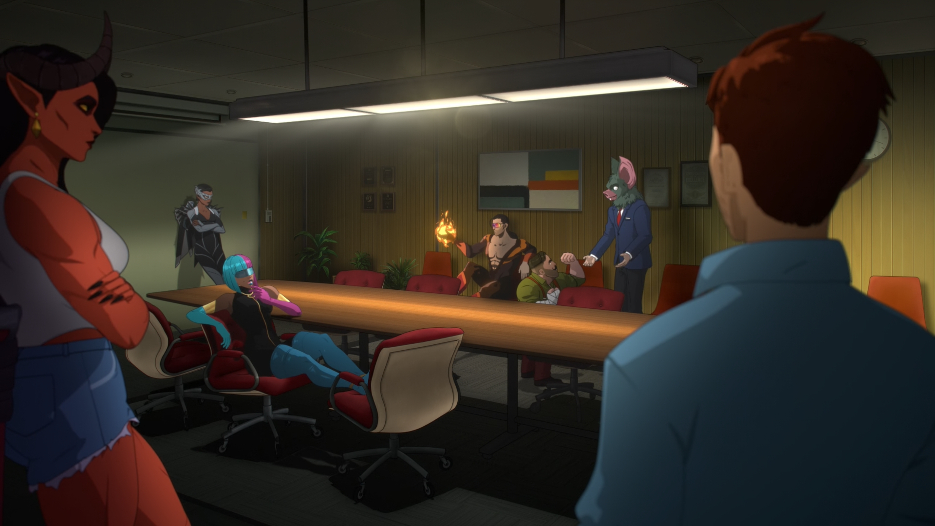 Mais surtout, il va rencontrer la Team-Z. L’équipe qu’il aura en charge, une équipe qui fait partie du programme « Phoenix », programme qui essaye de remettre des super-vilains dans le droit chemin en leur faisant faire des actions super-héroïques. L’équipe se compose de Sonar, Coupé, Court-Pif, Invisimeuf, Malévola, Flambeau, Prisme et Golem.