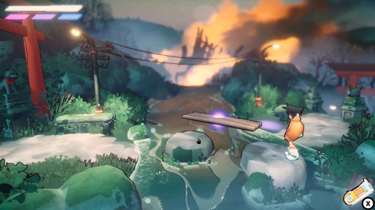 Bien que Freeride se présente comme un RPG, nous sommes plutôt dans une expérience narrative avec quelques petits éléments de RPG. Nous incarnons un personnage mi-humain mi-renard qui s’appelle Proto.
