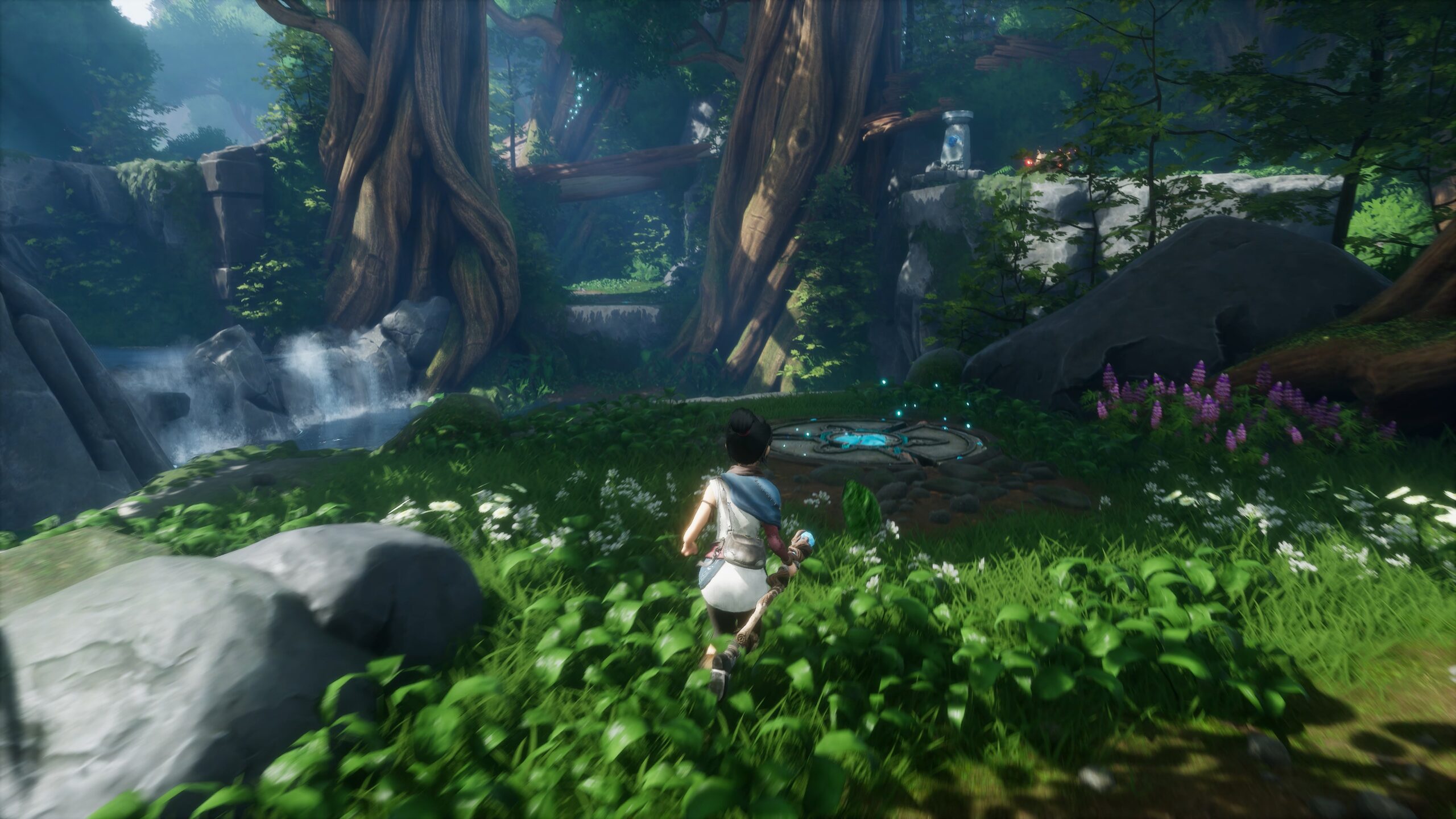 L’arsenal de notre guide spirituel n’est pas très étendu, mais il est suffisamment bien pensé pour offrir une variété appréciable. On commence avec un simple bâton, qui sert à la fois pour les attaques légères et lourdes au corps-à-corps. Très vite, on obtient la possibilité de transformer ce bâton en un arc magique, permettant d’engager des ennemis à distance ou d’activer des mécanismes. Plus tard dans l’aventure, on débloque également des bombes spirituelles, utiles autant pour le combat que pour la résolution de puzzles. Les énigmes sont intelligentes sans être trop complexes, et elles exploitent parfaitement les capacités de Kena ainsi que celles des Rot, ces petites créatures adorables qui nous accompagnent. Il faudra déplacer des structures, activer des cristaux dans un ordre précis, utiliser son bâton comme un grappin pour atteindre des zones inaccessibles… Bref, le level design est soigné et la progression est fluide.