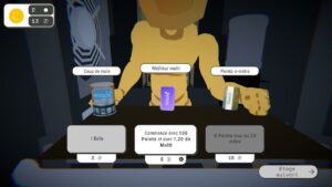 C’est entre les étages que Rogolf déploie ses ailes de roguelite. Dans l’ascenseur, un personnage mystérieux nous propose des améliorations contre les pièces récoltées. Bonus de points sur les rebonds, multiplicateurs augmentés, réductions de coût par coup… De quoi personnaliser chaque run. On accède aussi à une salle de pause où on peut acheter des balles supplémentaires ou récupérer des upgrades sous forme de café. Ces choix, parfois cruciaux, déterminent notre capacité à aller loin.