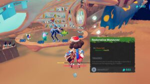 L’objectif est d’une simplicité désarmante. On doit traverser des niveaux générés procéduralement, regroupés dans dix grands « Fragments », avant qu’un mur de miasme ne nous engloutisse. Pour réussir, il faut enchaîner sprints, sauts, wall-runs et surtout des atterrissages parfaits. Chaque réception au sol bien exécutée remplit un compteur de vélocité et permet de maintenir l’élan. Une mauvaise réception, un obstacle mal négocié, et c’est le ralentissement assuré, synonyme de mort imminente. On collecte des étincelles en chemin, que l’on dépense entre les zones pour acheter des objets améliorant nos statistiques — vitesse, santé, chance, dégâts. C’est un roguelite dans l’âme : on recommence de zéro après chaque run, mais on débloque progressivement de nouveaux Fragments.
