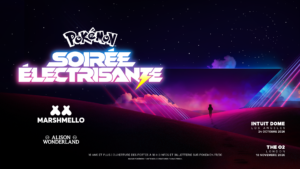 Pour la première fois dans l’histoire de la marque, Pokémon pénètre dans l’univers de l’electronic dance music (EDM) en collaborant avec des artistes de renommée mondiale : Marshmello et Alison Wonderland seront respectivement la tête d’affiche et la première partie d’un évènement musical en live, dont la direction artistique a été pensée spécialement pour la Soirée électrisante Pokémon. Au programme : des performances renversantes étayées par une technologie scénique de pointe, ainsi qu’un scénario visuel inspiré de l’univers Pokémon qui promet de donner vie à la marque phare dans une ambiance survoltée.