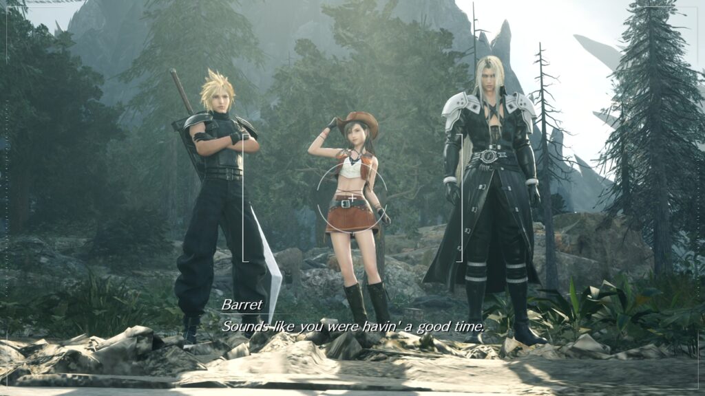 La session débute là où tout a commencé dans nos souvenirs, et où tout déraille dans le lore : l’ascension du Mont Nibel. On retrouve immédiatement le doublage français, toujours aussi impeccable et qui ne souffre d’aucune compression audio disgracieuse, un détail important pour un jeu où les silences et les respirations de Séphiroth comptent autant que ses répliques.