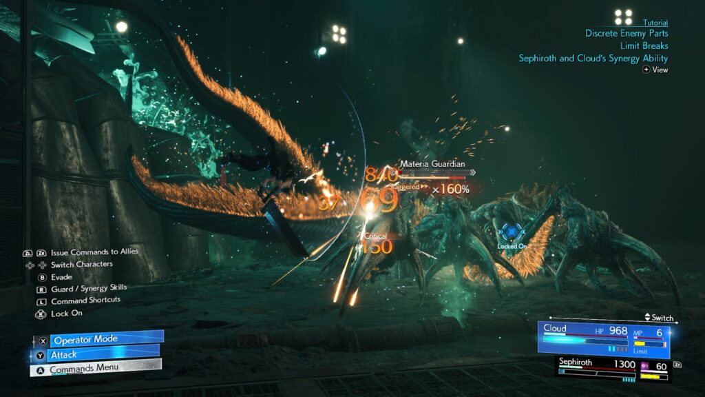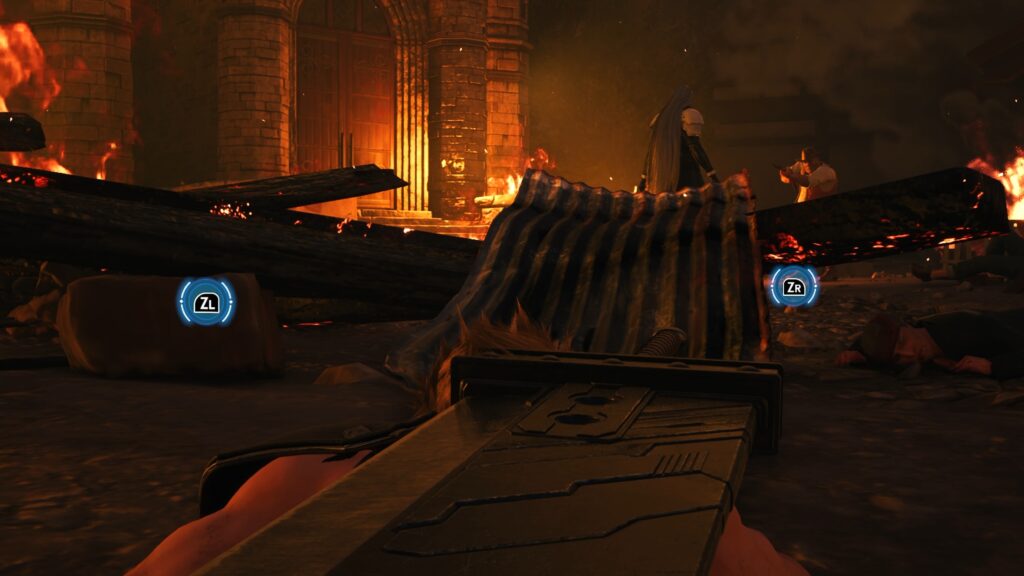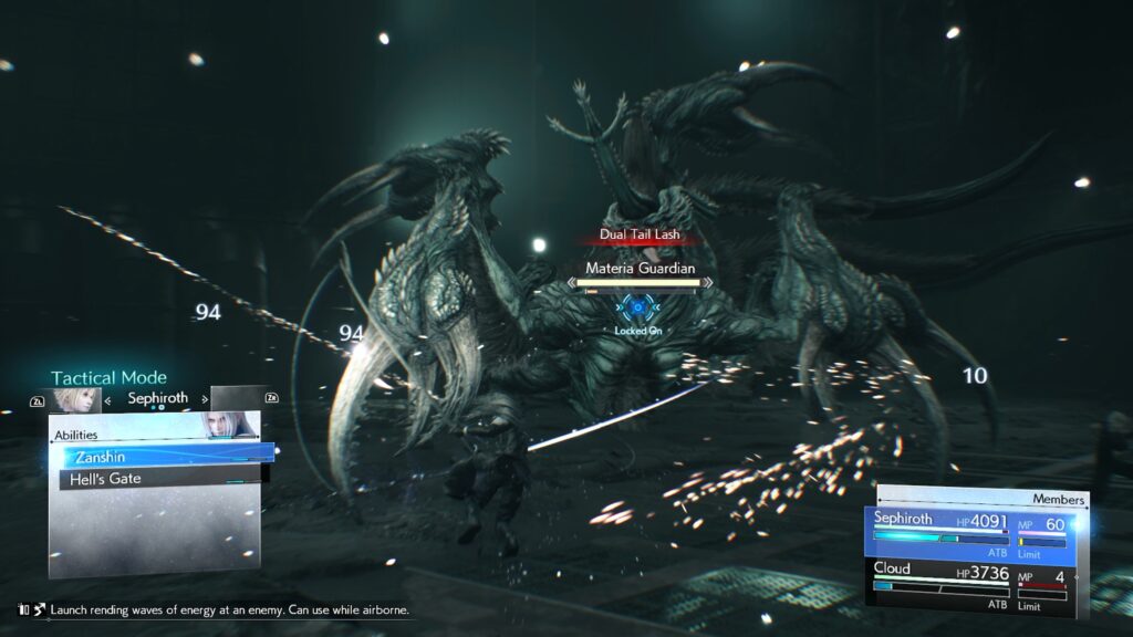 La prise en main de Séphiroth est LE moment grisant que l’on attendait. Sur Switch 2, le rendu de sa puissance est tout aussi jouissif que sur les autres plateformes. Le jeu ne rame pas d’un iota lorsqu’on enchaîne les dashs dans la brume ou qu’on lance une Spirale Croisée avec Cloud sur le Gardien de Matéria. C’est fluide, sec, et terriblement satisfaisant. On a particulièrement apprécié le soin apporté aux vibrations HD.