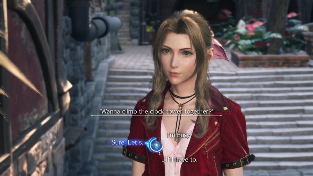 Passé le drame de Nibelheim, on atterrit à Kalm. Et là, on respire. Là où le portage Switch du premier Remake souffrait parfois de textures qui mettaient une plombe à charger en arrière-plan, Rebirth sur Switch 2 fait preuve d’une maîtrise bluffante. Kalm est vivante, grouillante de détails et plus vaste que jamais. On a profité du court répit scénaristique pour grimper en haut du clocher avec Aerith lors d’un date improvisé ; la vue panoramique dévoile un level of detail (LOD) parfaitement stable. C’est propre, c’est net, et surtout, ça ne fait pas mal aux yeux.